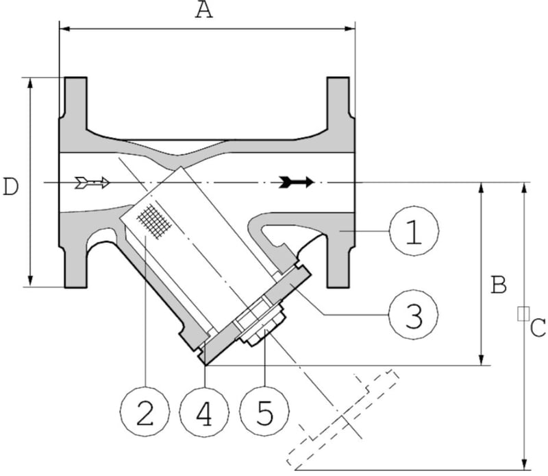 Y-snavssamler i støbejern med flanger PN16. Med rustfri filterindsats