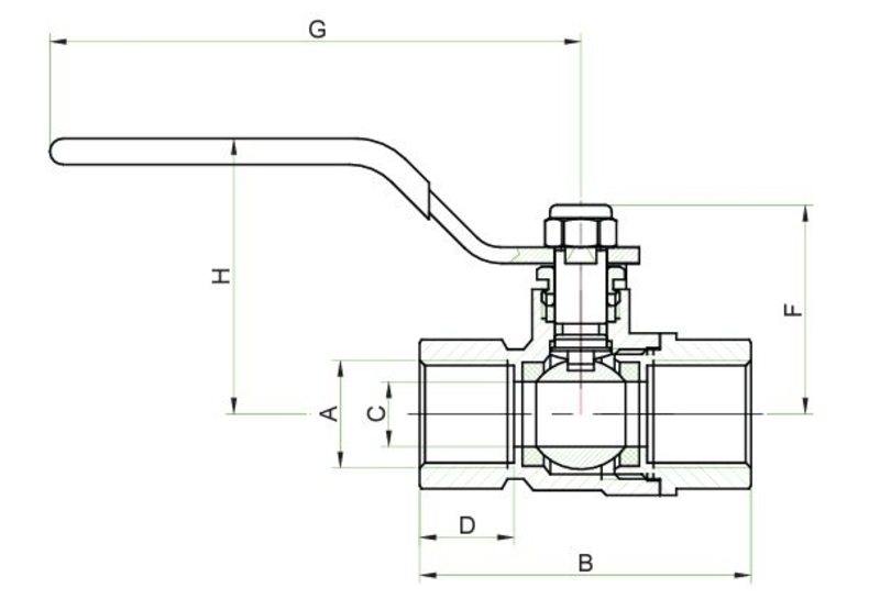 2-delt kugleventil med gevind for koldt og varmt vand, og ikke aggressive medier. Afspærringsventil til varme-, køle-, luftsystemer