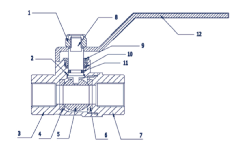 | 10 | Øverste spindelpakning | PTFE (polytetrafluoreten) |