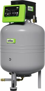 Komplet trykekspansion type Reflexomat Silent Compact Smart med lukket beholder og topmonteret styring med kompressor for stabil drift af et varme- eller kølesystemer. Kompakt design med lydsvag kompressor monteret direkte på beholderen.