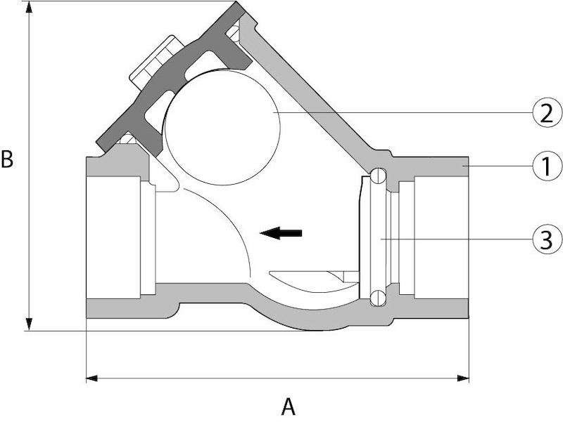 Pallotakaiskuventtiili PN 10, valurautaa, sisäkiertein tai laipoin. Erityisesti jätevedelle ja muille epäpuhtaille nesteille.