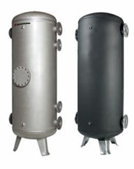 Akkumulatortank for kjølemediesystem i rustfritt stål, sinkmalt på utsiden.