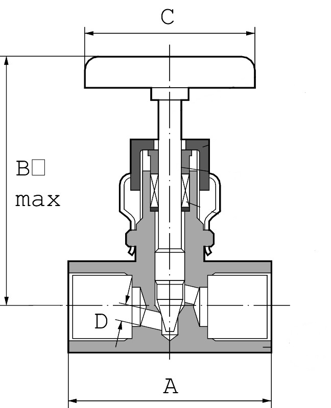 NÄleventil for avstengning og regulering av damp, gasser og vÊsker. Utstyrt med lÄsebrakett som hindrer at pakkboksmutter og spindel lÞsner under drift og vibrasjoner. Ventilene har innvendige spindelgjenger med stigende spindel og knott.