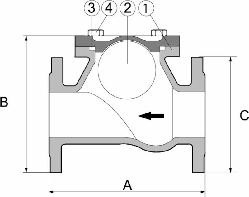 Tilbakeslagsventil, type kule, for avløpsvann, forurenset vann, sandholdig vann og viskøse medier.