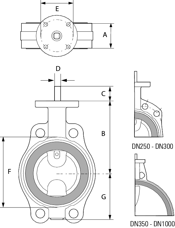 Myktettende vedlikeholdsfri dreiespjeldventil med sentrisk spjeld, delt spindel, helt hus med påvulkanisert gummitetning som eliminerer risikoen for korrosjon, beskytter ventilhuset innvendig mot korrosjon og fungerer som flenspakning. Utførelsen sikrer utmerket tetning og lang levetid. Spjeldets profil er avgjørende for å oppnå gode strømningegenskaper.