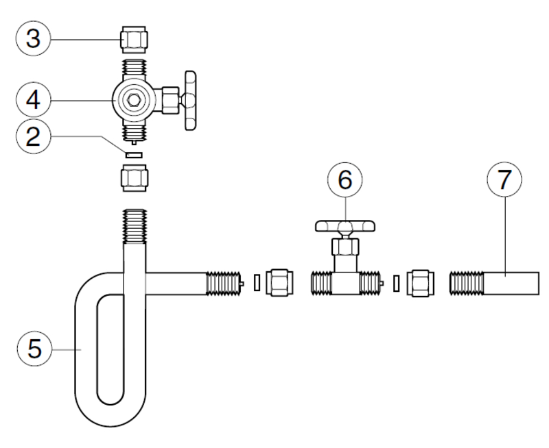 TryckmÀtarsats, armatur rostfritt stÄl, vattensÀcksrör i rostfritt stÄl, PN 160. Exklusive tryckmÀtare och svetsstuds.