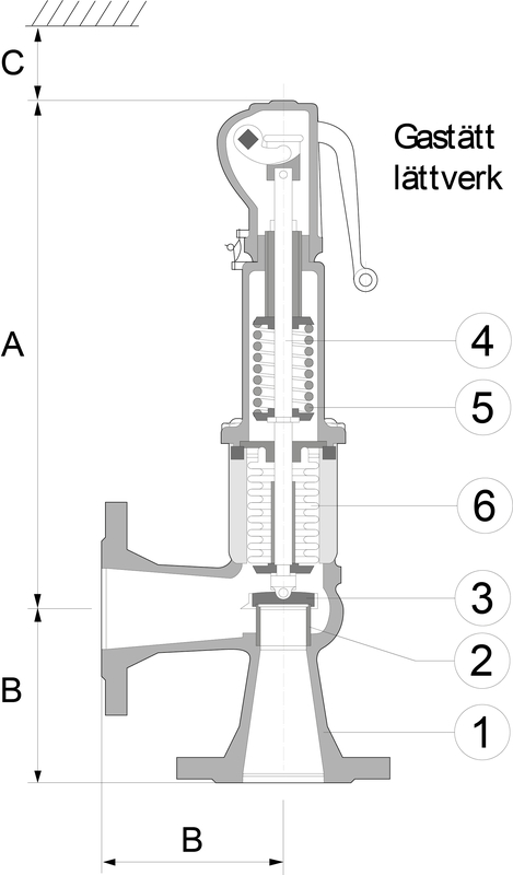 Direktverkande fjäderbelastad säkerhetsventil med normal karaktäristik och veckbälg. Med eller utan lättverk för manuell provning, gastät fjäderkåpa. Om möjligt bör mjuktätande kägla (se AT 4578) användas då den har en högre täthet och är lättare att renovera. Den mottryckskompenserande veckbälgen eliminerar inverkan på säkerhetsventilen även vid varierande mottryck, upp till ca 35% av öppningstrycket. Dessutom skyddar bälgen de rörliga delarna mot smuts, korrosion och temperatur.
