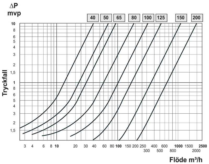 | DimensionsomrÄde (DN) | 40 - 200 |