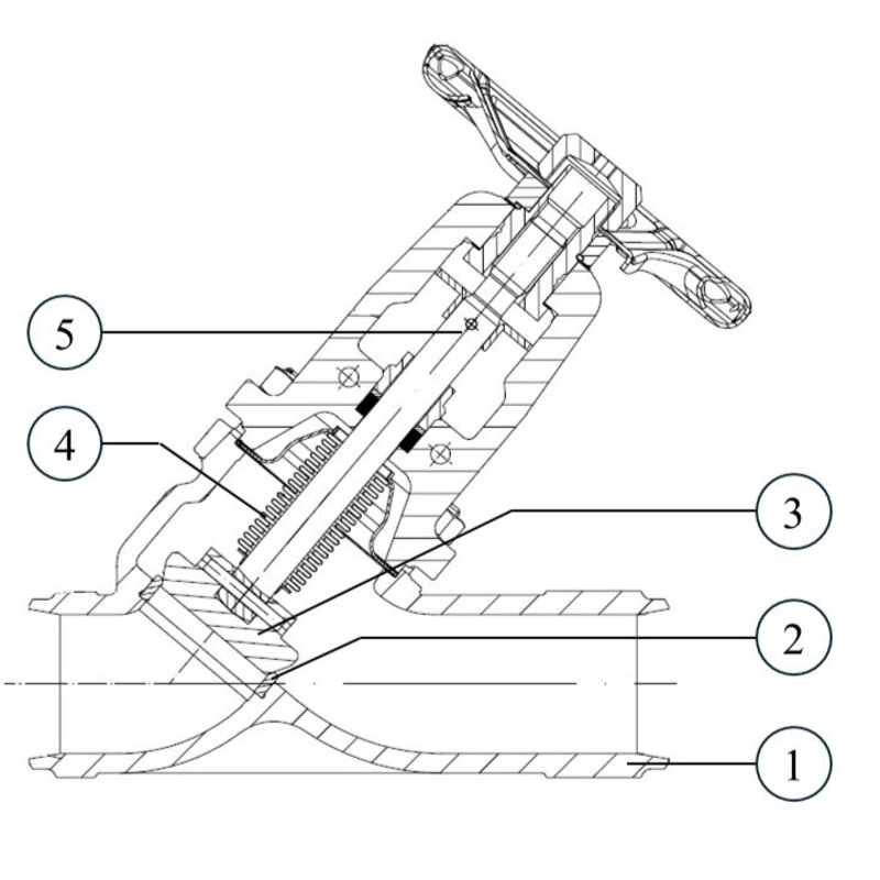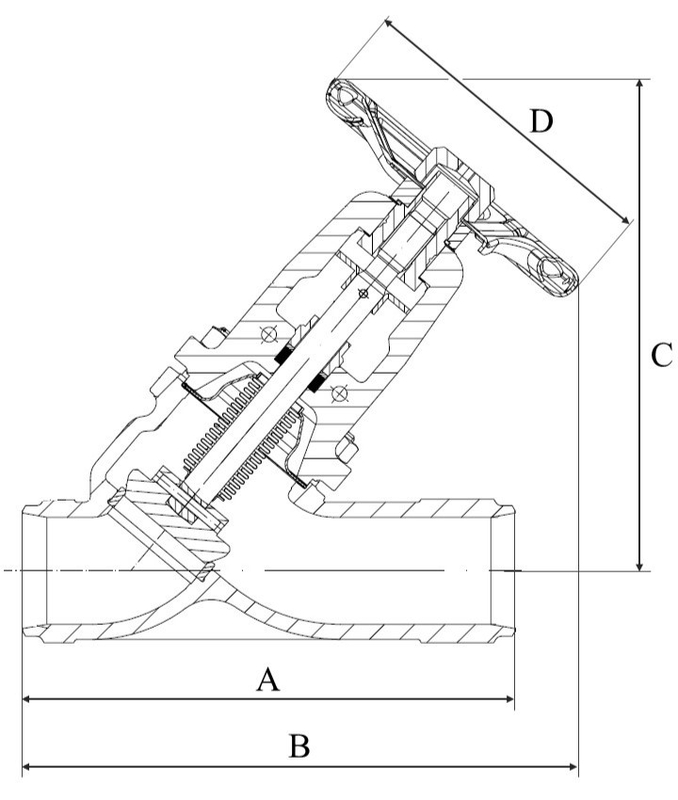 Kägelventil av stål, snedsätesutförande med svetsändar, PN 40. Med veckbälg vilket förhindrar att mediet kommer i kontakt med packboxen. Underhållsfri, utvändig spindelgängning, visaranordning som markerar öppet/stängt läge, icke stigande ratt. Som avstängningsventil för ånga, kondensat, hetvatten, hetolja samt hälso- och miljöfarliga medier. Kan fås med reglerkägla.