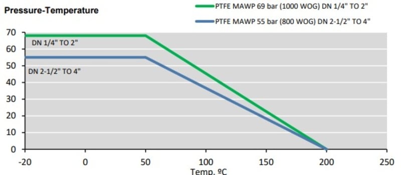 Kulventiler av rostfritt stÄl/PTFE fullt genomlopp med invÀndiga gÀngor. För i huvudsak syror och saltlösningar, lösningsmedel, alkoholer och petroliumprodukter.