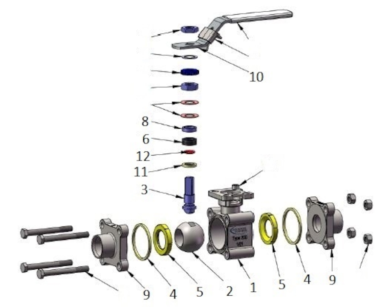 Kulventiler med fullt genomlopp av rostfritt stål/CPTFE med svetsändar och fästfläns för manöverdon. Lämplig att automatisera. Tredelad för enkel service och underhåll. För i huvudsak syror och saltlösningar, gas, ånga, varmt och kallt vatten.