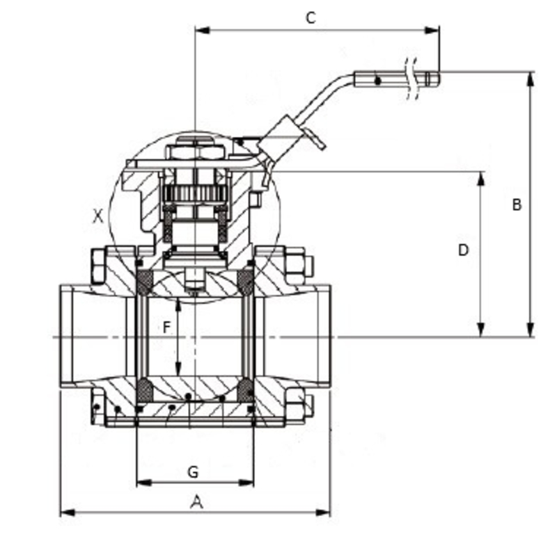 Kulventiler med fullt genomlopp av stÄl/CPTFE med invÀndiga gÀngor och fÀstflÀns för manöverdon. LÀmplig att automatisera. Tredelad för enkel service och underhÄll. För i huvudsak Änga, gas, varmt och kallt vatten.
